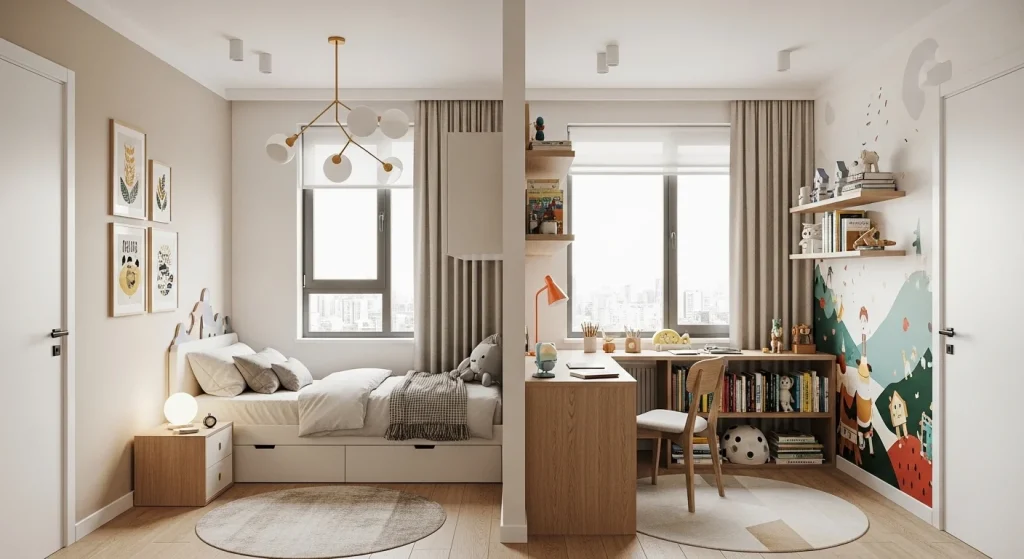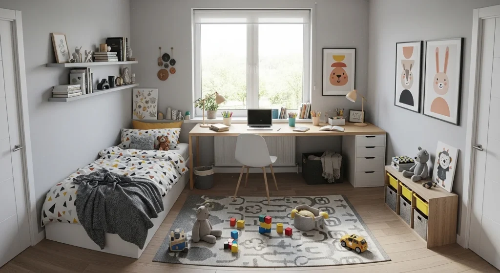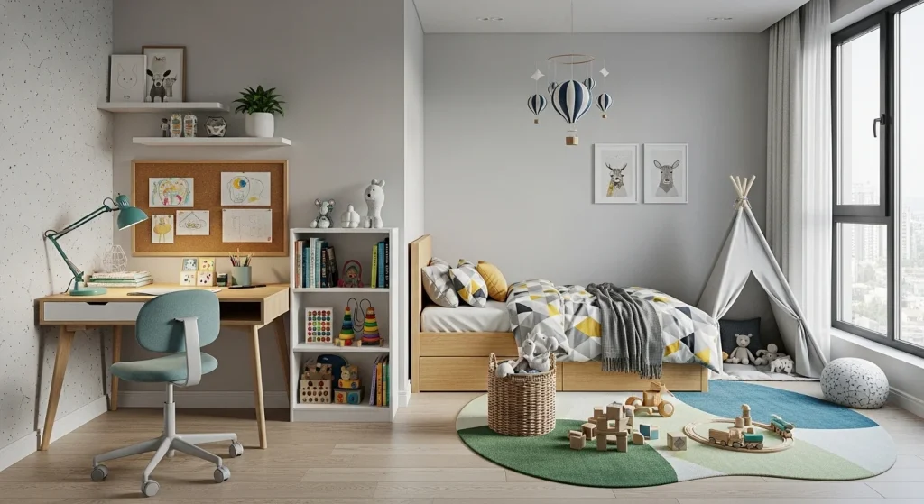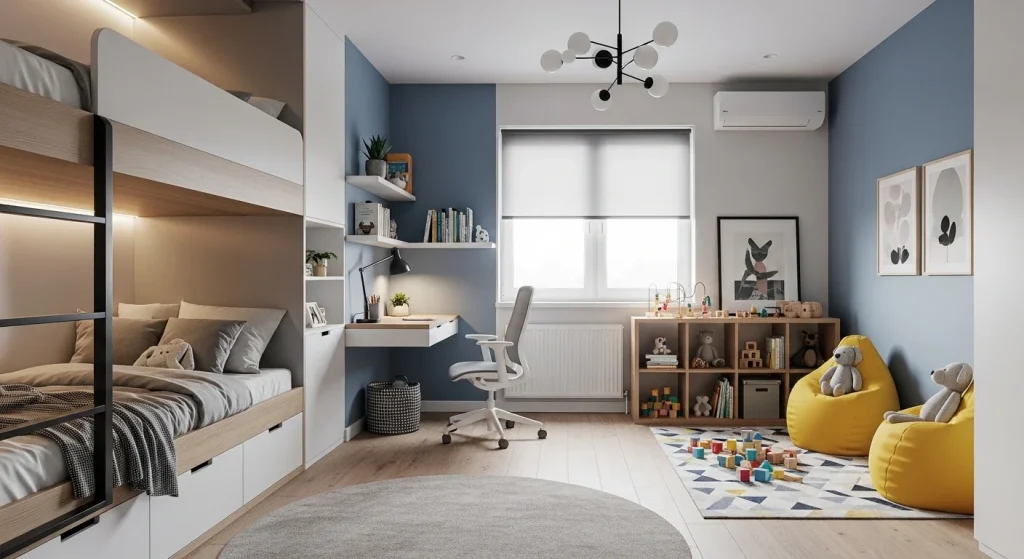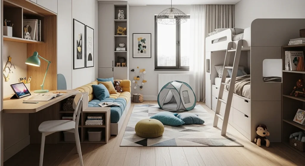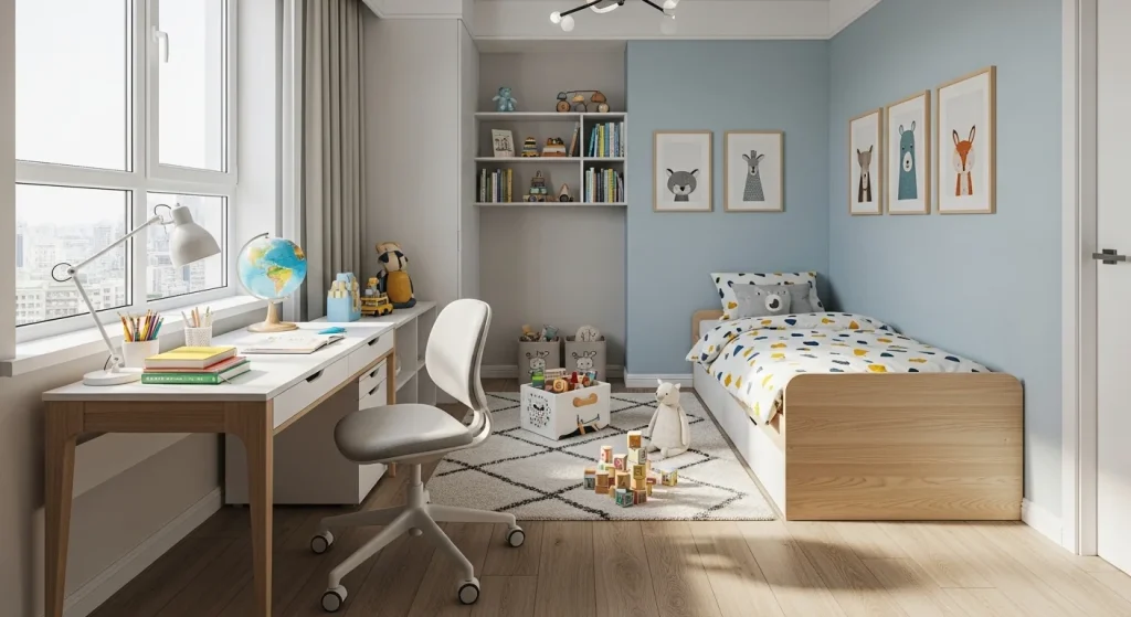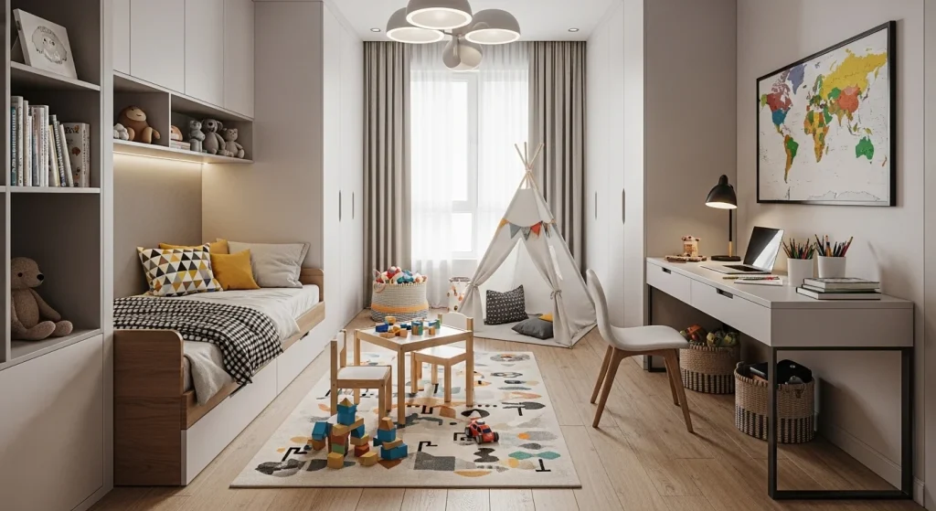 Designing zones that can shift function throughout the day adds flexibility. A study desk can double as a craft table, and the play area can adapt easily. The layout feels dynamic and efficient. It reduces the need for extra furniture. The room stays uncluttered and practical. A modern approach to small-space living.