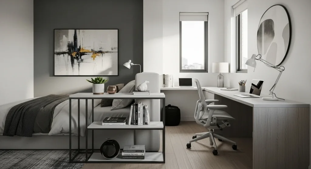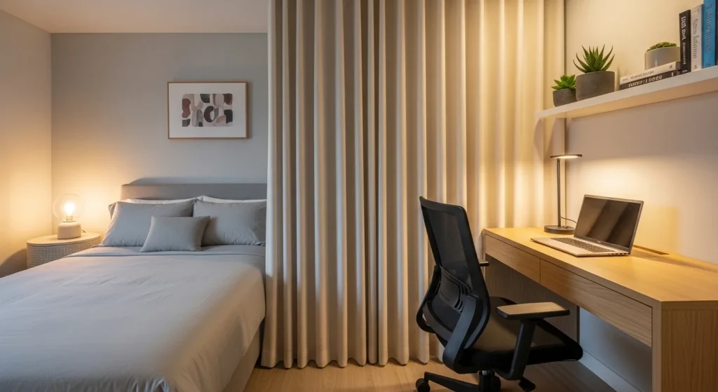 Using different lighting styles helps define zones effectively. Soft warm lighting can highlight the bed area, while brighter light works for study or work. This creates mood-based separation. The room feels more functional. It enhances comfort. A subtle but powerful idea.