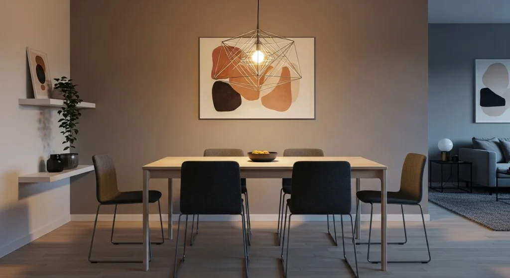 Adding a statement light fixture above the dining table creates a strong focal point. It defines the dining area visually. The lighting enhances the atmosphere instantly. The setup feels more intentional and styled. It draws attention upward. A simple way to elevate the space.