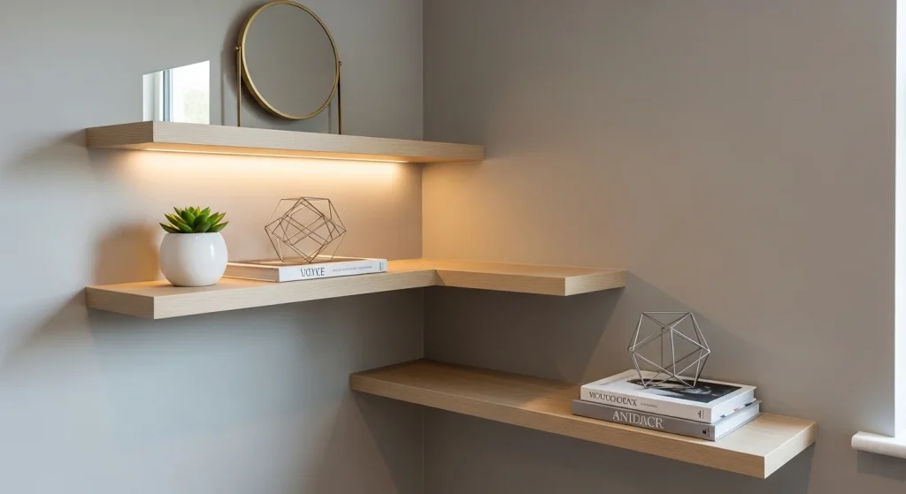 Corner shelves help utilize vertical space while adding style. You can display books, plants, or decorative items. This keeps the corner functional and organized. It also adds visual interest. It’s both practical and aesthetic.