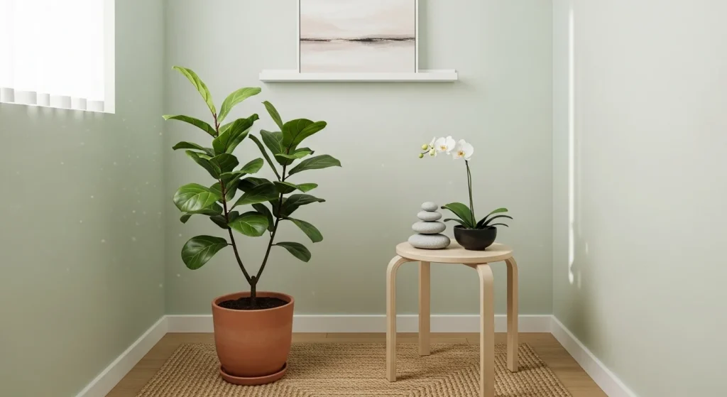 A calm corner with a plant, mat, or simple decor can create a peaceful zone. This helps balance your living space. It also promotes relaxation. Keeping it minimal enhances the effect. It’s perfect for a clean aesthetic.