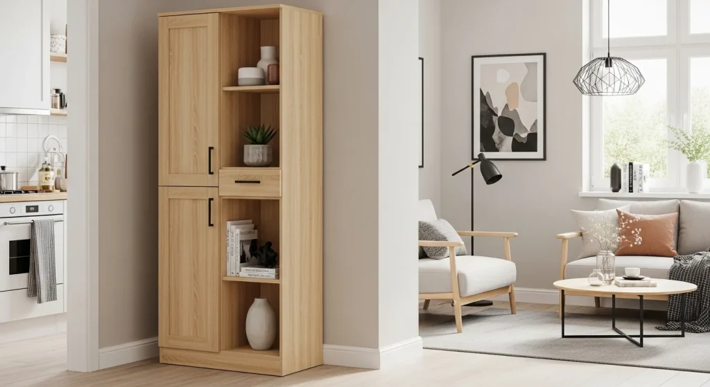 A slim cabinet can provide storage while maintaining a clean look. It helps keep items organized and hidden. This improves functionality without cluttering the space. It also adds structure. It’s ideal for small apartments.