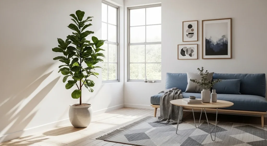 A tall plant instantly fills an empty corner with life and freshness. It adds height and texture without cluttering the space. This makes the room feel more vibrant and balanced. It also improves the overall aesthetic. It’s one of the easiest styling ideas.