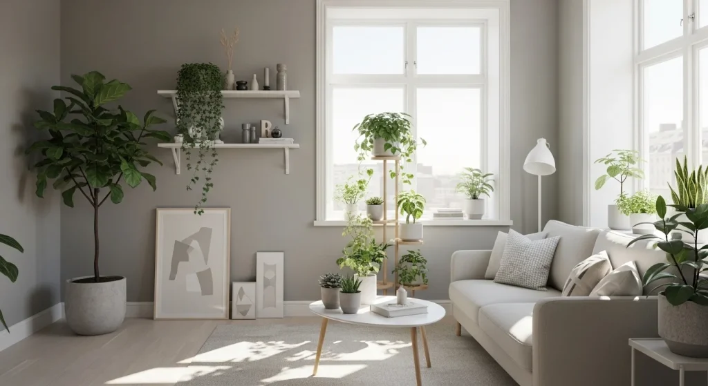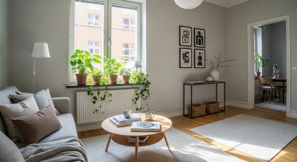 Placing plants near a window allows them to thrive while instantly brightening your apartment. Natural light enhances the greenery and makes the space feel fresh. The setup feels open and airy. It connects your indoor space with the outdoors. The room becomes more alive. A simple and effective starting point.
