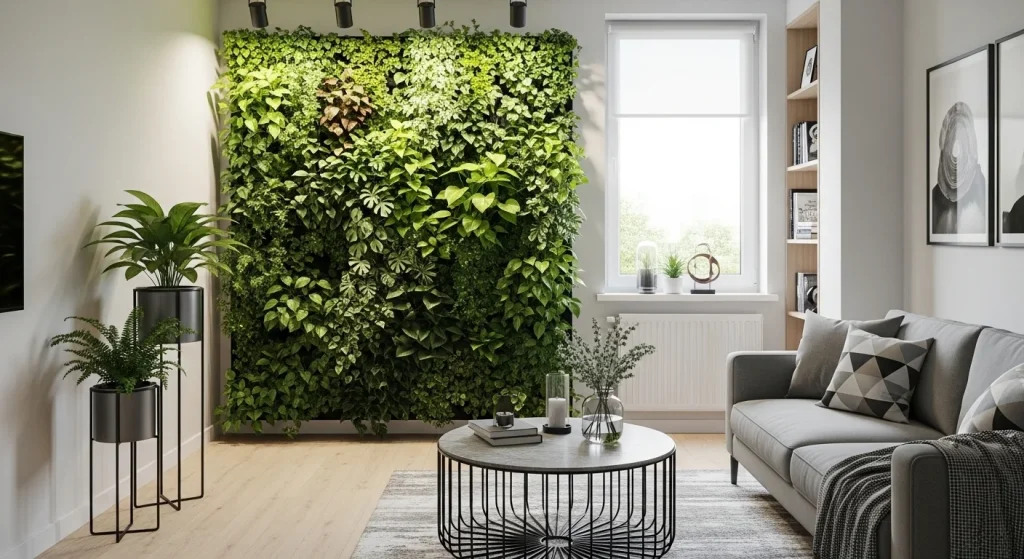 Creating a vertical garden wall adds greenery without taking up valuable floor space. It transforms an empty wall into a refreshing focal point. The setup feels structured and visually appealing. It keeps the room organized while adding life. The greenery becomes part of the design. A smart and space-saving solution.
