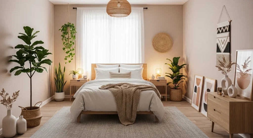 Adding a few plants in the bedroom creates a peaceful and relaxing environment. It enhances the sense of calm and comfort. The setup feels soft and soothing. It supports a restful atmosphere. The greenery adds subtle freshness. A simple bedroom upgrade.