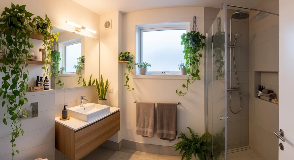 Adding moisture-loving plants to the bathroom creates a spa-like and refreshing feel. The setup feels clean and calm. It enhances the overall atmosphere. The greenery pairs well with soft lighting. The space becomes more relaxing. A unique and refreshing upgrade.