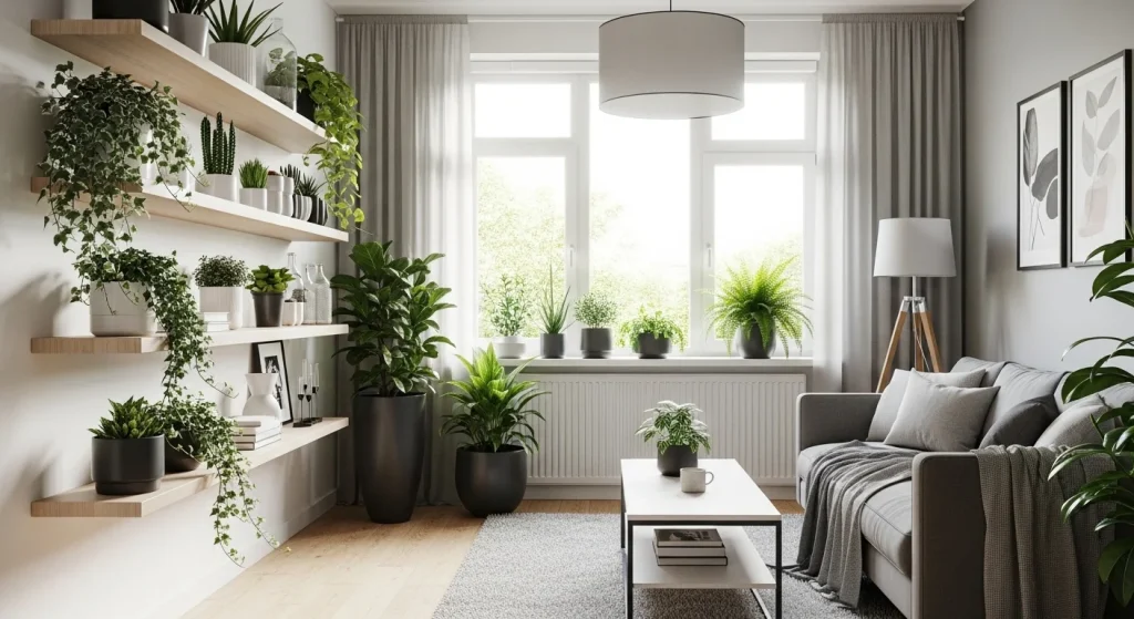 Using floating shelves for plants creates a light and organized display. It keeps the floor clear while adding greenery. The setup feels minimal and structured. It enhances vertical space beautifully. The room looks more balanced. A clean and modern approach.