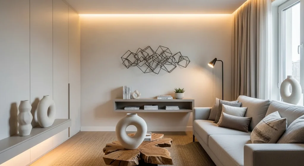 Introducing one sculptural decor piece instantly elevates the space with an artistic and expensive feel. It creates a focal point without adding clutter. The unique shape adds visual interest in a subtle way. This approach keeps the room minimal yet refined. It reflects intentional styling. A small detail that feels high-end.