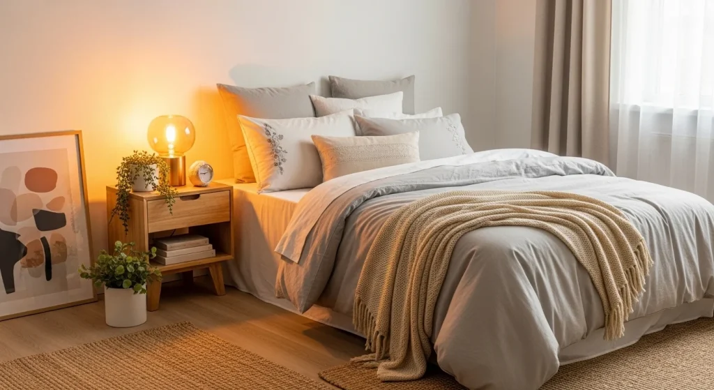 Layering soft neutral fabrics instantly creates a rich and expensive feel without overwhelming a small space. Combining linen, cotton, and subtle textured materials adds depth in a quiet and elegant way. The tones blend seamlessly, avoiding harsh contrasts. This makes the room feel calm and refined. The softness enhances comfort visually and physically. It’s a foundational soft luxury approach.