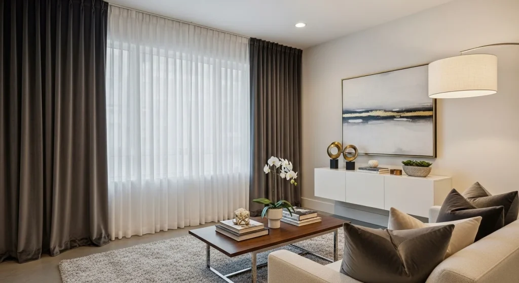 Layering sheer curtains with heavier drapes creates a soft luxury window treatment that feels elegant and complete. The sheer layer diffuses light beautifully during the day. The heavier fabric adds depth and richness. Together they create a balanced and high-end look. This combination enhances both function and style. A designer-level detail.