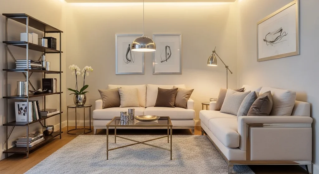 Adding small metallic accents like brushed gold or matte brass introduces a subtle luxury feel without overpowering the space. The key is using them sparingly to maintain balance. These accents catch light and add warmth. They elevate the overall aesthetic quietly. The room feels more refined instantly. A controlled luxury touch.
