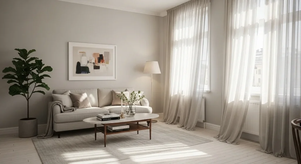 Long, flowing curtains add elegance and softness to any room. They create movement and visual height. The fabric diffuses light beautifully. This makes the space feel airy and expensive. Curtains also frame the room in a refined way. A simple but impactful luxury detail.
