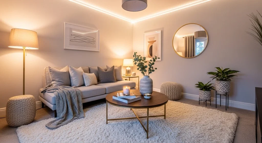 Adding a soft, plush rug introduces warmth and texture to the space. It grounds the room and connects all elements together. The softness enhances comfort visually. It also adds a sense of luxury underfoot. The room feels more complete. A subtle but powerful upgrade.