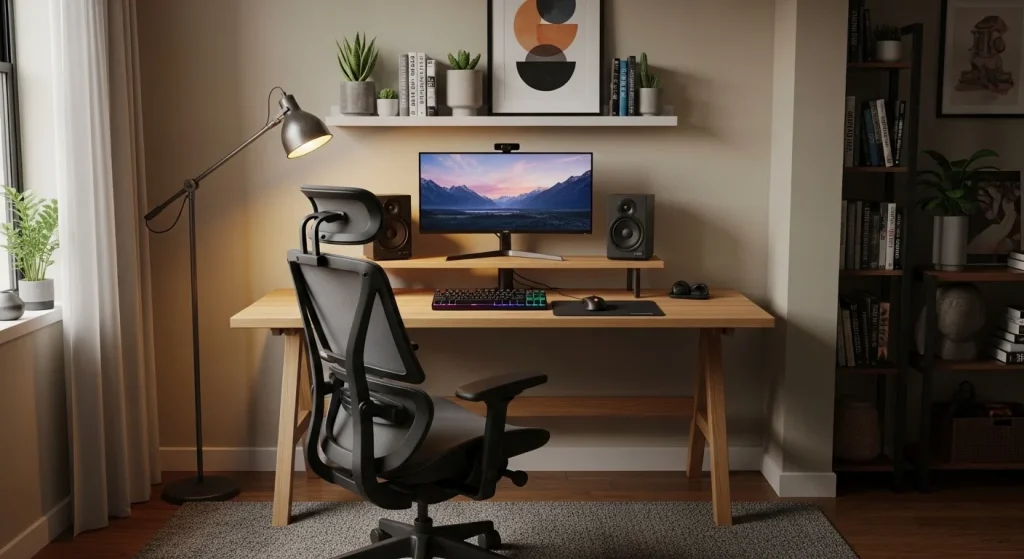 A workspace you actually use needs to be comfortable for extended periods. A supportive chair and proper desk height reduce strain and fatigue. The setup feels more inviting and usable. It encourages longer focus sessions. Comfort directly improves productivity. A must-have foundation for daily work.