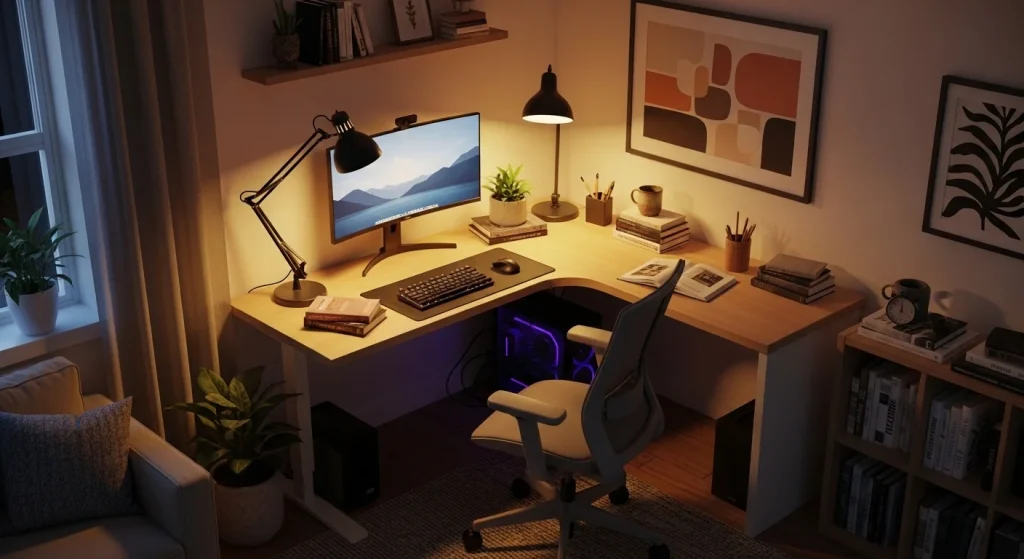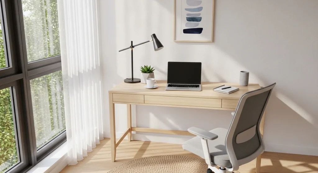 The key is creating a workspace that fits naturally into your routine while staying visually calm and functional. Small changes in layout, lighting, and organization can make a huge difference in how often you actually use the space.
